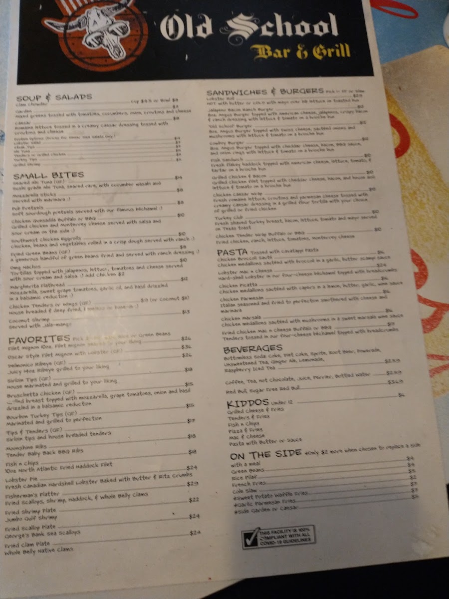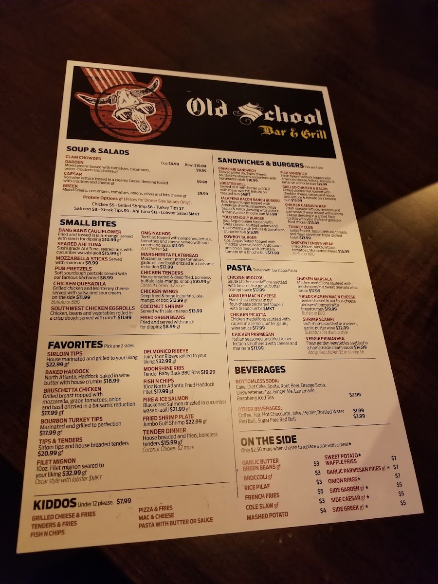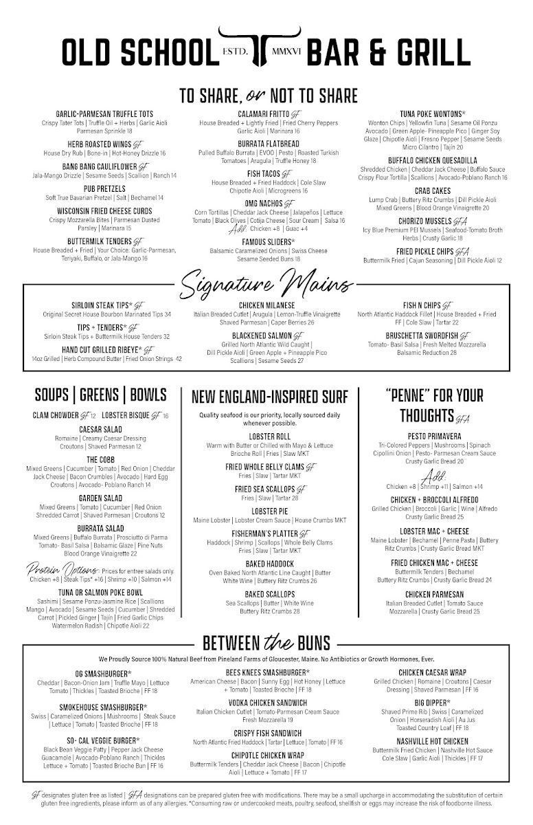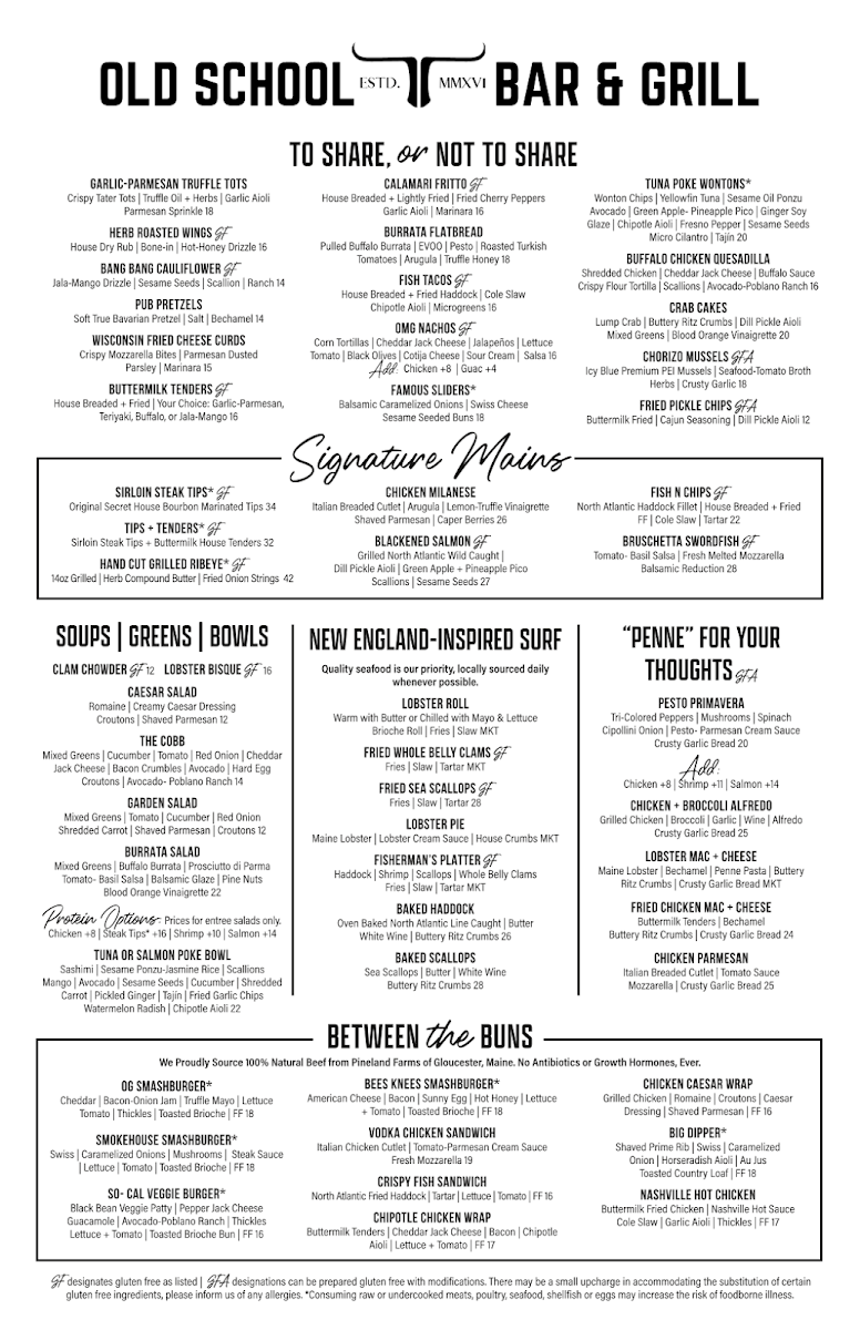 Old School Bar & Grill Menu (2025 Update)