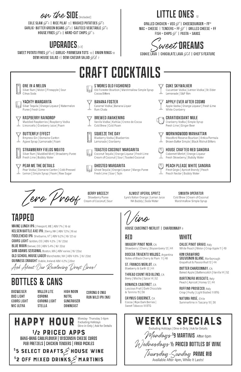 Introducing the menu at Old School Bar & Grill, located in Windham, NH, promises a delightful experience of hearty dishes and refreshing beverages. The culinary highlights include the mouthwatering Prime Rib—slow-roasted to perfection—and the tender Moonshine BBQ Pork Ribs that fall right off the bone. For lighter fare, the “Old School” Turkey Tips stand out, marinated in a secret house recipe that guarantees flavor in every bite.